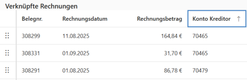 Dies gelingt komfortabel per Drag-and-Drop: Ziehen Sie die gewünschten Rechnungen aus dem unteren Bereich in die Ansicht „Verknüpfte Rechnungen“. Über die Ankerpunkte lässt sich die Reihenfolge exakt so anpassen, wie sie auf der Kreditkartenabrechnung aufgeführt ist. Gerade bei umfangreichen Abrechnungen erleichtert das die Vollständigkeitsprüfung erheblich.